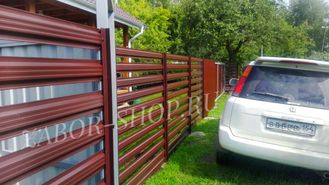 новинка Забор из металоштакетника горизонтальный от 2000 руб. пог/м Менеджеры нашей компании всегда готовы подобрать для Вас наиболее выгодный и удобный вариант ограждения. Если у вас возникли вопросы по ценам или порядке установки, звоните по телефону 263-08-43 или нажмите: Менеджеры нашей компании всегда готовы подобрать для Вас наиболее выгодный и удобный вариант ограждения. Если у вас возникли вопросы по ценам или порядке установки, звоните по телефону 263-08-43 или нажмите: Описание Описание В СТОИМОСТЬ ЗАБОРА ВХОДИТ:1.Металлические столбы 60*40 (через 2 м)2. Металлический штакетник ПРЕМИУМ на ВАШ выбор (шаг 4 см)3. Саморезы в цвет штакетника4.Монтаж забора5. Бетонирование столбовПолимерное покрытие столбов В ПОДАРОК!